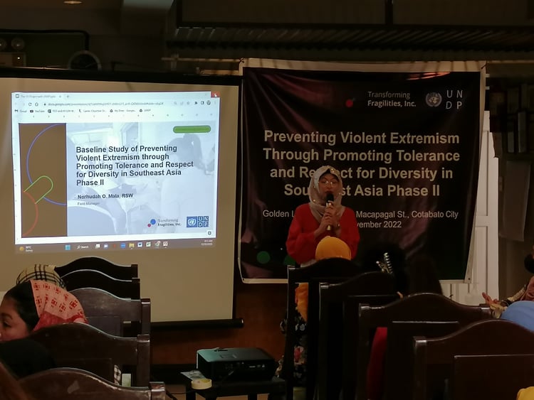 36 enumerators, 6 provincial supervisors, and their respective documenters were trained and deployed by Transforming Fragilities to conduct a baseline study on preventing violent extremism (PVE) in the five (5) BARMM provinces and SGA. This study was commissioned by the United Nations Development Programme (UNDP) in line with their project entitled, “Preventing Violent Extremism through Promoting Tolerance and Respect for Diversity in Southeast Asia Phase II,” which is funded by the European Union.