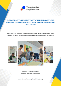 Developed by Ahmed Harris R. Pangcoga, this Foundations of Conflict Sensitivity and Core Analysis module was developed by Transforming Fragilities, Inc. (TFI) as a learning resource for peace and development practitioners in fragile and conflict-affected settings. The module introduces participants to key concepts, frameworks, and tools in conflict sensitivity, enabling them to integrate “Do No Harm” principles into program design, implementation, and evaluation. It provides a structured approach to understanding conflict contexts, stakeholder dynamics, and the unintended impacts of interventions. The training aims to build analytical capacity for developing strategies that promote social cohesion, mitigate risks, and strengthen resilience within communities.